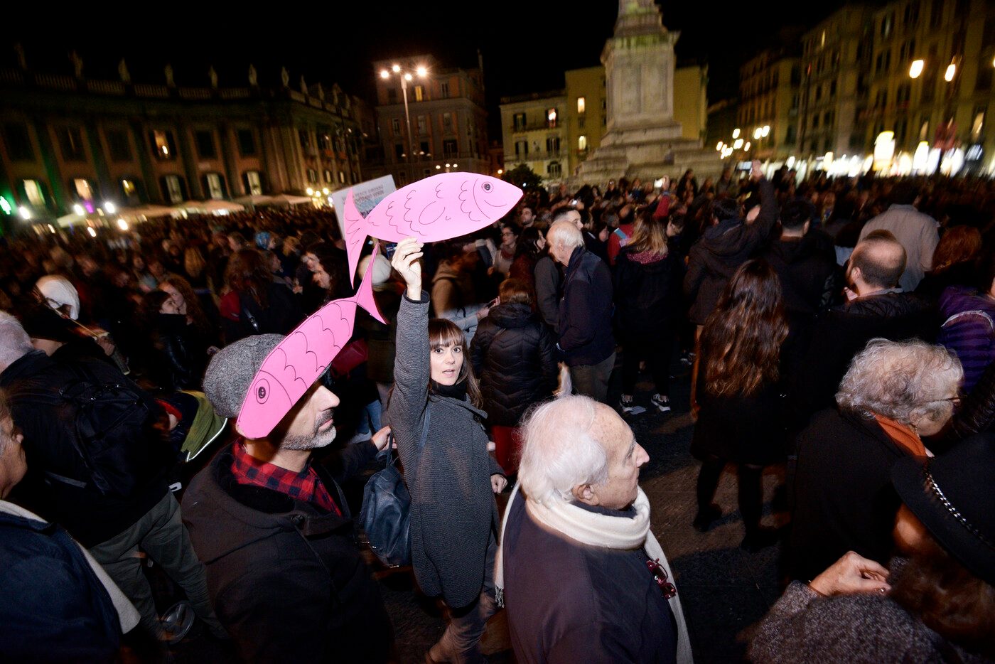 Sono circa 10 mila le sardine scese stasera in piazza Dante a Napoli per manifestare contro Matteo Salvini sotto lo slogan "Napoli non si lega" tra cori contro il leader della Lega e canti che hanno intonato "Napule è" di Pino Daniele e "Bella Ciao".