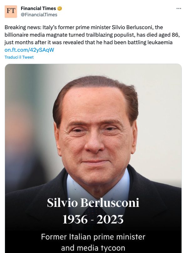 La morte di Berlusconi in prima pagina sui giornali esteri