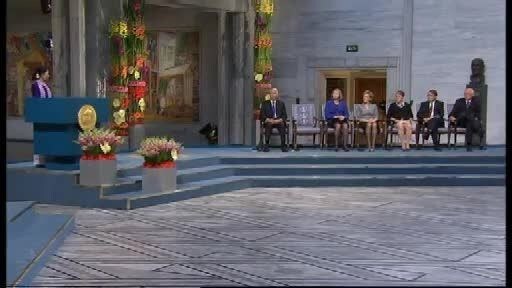 Con un toccante discorso la leader dell'opposizione birmana, Aung San Suu Kyi, ha ricevuto sabato 16 giugno 2012 a Oslo il premio Nobèl per la Pace che le fu conferito 21 anni fa e che allora non ritirò, perche' la giunta militare l'aveva rinchiusa agli arresti domiciliari.