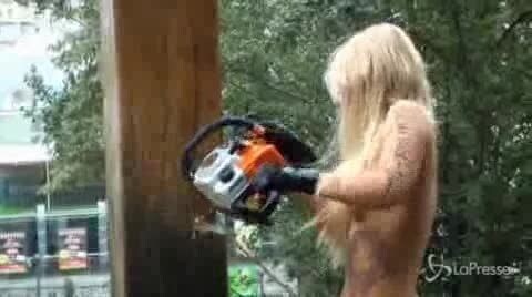 Alcune femministe che supportano le Pussy Riot hanno protestato a Kiev, capitale ucraina, mettendosi in topless e tagliando con una motosega un grande crocifisso nel centro della città.