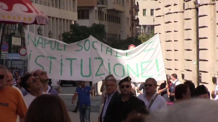 Da 48 ore i lavoratori di Napoli Sociale presidiano l'entrata del palazzo di via Verdi per protestare contro l'ipotesi di trasformazione della società partecipata in fondazione.
