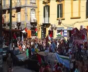 Napoli, 6 ottobre. Estelle è in viaggio verso Gaza. Nel pomeriggio ha lasciato il molo Beverello di Napoli, ultima tappa prima di tentare di forzare il blocco israeliano e portare nella Striscia aiuti umanitari e la solidarietà dei popoli europei. Già, perché in tre mesi e mezzo di viaggio il veliero, salpato dalla Svezia a fine giugno, ha toccato diversi porti del Vecchio continente e in ognuno di questi è stato accolto dal calore e dal sostegno di centinaia di persone. La giornata si è aperta con un corteo partito da piazza del Gesù, che ha visto sfilare per le strade della città circa 2.000 persone. All'interno del porto Dror Feiler, portavoce di Ship to Gaza e della coalizione internazionale, ha ringraziato le autorità italiane per non aver creato problemi e non aver ceduto alle pressioni israeliane (nel ricordo di ciò che accadde lo scorso anno in Grecia, quando la Freedom Flotilla non riuscì a prendere il mare). Dror ha aggiunto che se Israele dovesse provare a fermarli con la violenza, loro non risponderanno alla stessa maniera, alle armi opporranno la forza del diritto e della giustizia. All'interno dell'imbarcazione, accanto a beni di prima necessità come cibo e farmaci, l'equipaggio ha caricato centinaia di palloni, che serviranno almeno in parte ad alleviare le sofferenze dei bambini di Gaza, regalando loro momenti di quella "normalità" negata, da oltre sessant'anni, dal governo di Tel Aviv. Dror ha salutato Napoli suonando il sax, tra gli applausi e la commozione dei presenti. Good luck Estelle! Salvatore Possumato