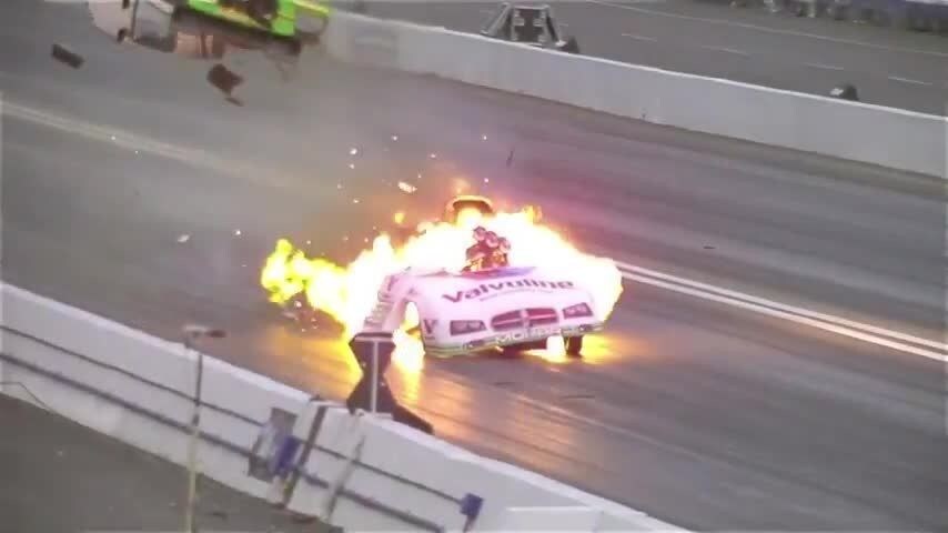 Durante una prova della NHRA, l'auto del pilota Jack Backman prende improvvisamente fuoco. L'incendio, per fortuna, dura solo pochi istanti e il temerario pilota esce indenne dall'abitacolo trovando anche la forza e il coraggio di esultare per la vittoria.