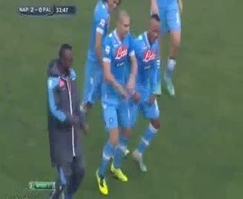 Dopo la rete del 2-0 siglata al Palermo, Inler esulta esibendosi in una simpatica coreografia con il neo arrivato in azzurro Armero, suo ex compagno all'Udinese, e con Zuniga. Un balletto che è già tendenza tra i tifosi del Napoli!