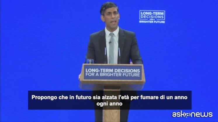 "Un Regno Unito libero dal fumo", l'annuncio al congresso Tory Roma, 4 ott. (askanews) - Il primo ministro conservatore britannico, Rishi Sunak, ha annunciato l'intenzione di aumentare progressivamente l'età legale per acquistare le sigarette, con l'obiettivo a lungo termine di fare del Regno Unito un Paese "smoke-free", totalmente libero dal fumo. "Propongo che in futuro sia alzata l'età per fumare di un anno ogni anno. Ciò significa che a un 14enne oggi non verrà più venduta legalmente una sigaretta. E loro e la loro generazione cresceranno liberi dal fumo", ha annunciato Sunak nel corso del suo intervento al congresso del partito Tory a Manchester, nel nord dell'Inghilterra.