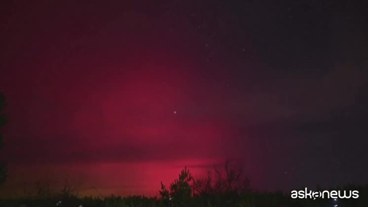 Lo spettacolo rarissimo è stato causato da due tempeste solari Kiev, 6 nov. (askanews) - Il cielo si tinge di rosa per l'aurora boreale. È capitato in Italia, nella serata di domenica 5 novembre 2023, dove in molti sono rimasti sorpresi nell'osservare lo straordinario fenomeno, che è stato visibile anche in altre zone d'Europa, per esempio in Austria, in Romania e in Ucraina. Queste immagini sono state girate proprio nelle regioni di Kharkiv, Odessa, Zaporizhzhia e Kherson, le stesse colpite dalla guerra. L'aurora boreale è un fenomeno atmosferico causato dall'interazione del cosiddetto "vento solare", il flusso di particelle provenienti della nostra stella con il campo magnetico terrestre. Atomi e molecole, eccitati dall'attrito, generano queste luci dai colori fantastici che vanno dal verde a varie sfumature di rosso, viola e di rosa, protagoniste di autentici spettacoli mozzafiato. Normalmente siamo abituati a immaginare le aurore boreali nei Paesi nordici come Islanda o Alaska, vicini al Polo Nord; lo stesso succede con le aurore australi nell'altro emisfero. Però, nel caso di intensa attività solare, è possibile che quest'evento sia visibile anche a latitudini più basse, com'è accaduto nella serata del 5 novembre dopo una doppia espulsione di massa coronale dal Sole che ha colpito 2 volte la Terra, causando una tempesta geomagnetica di classe G3.