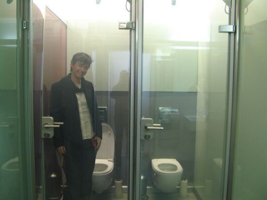 Lo strano bagno di un caffè di Vienna, la porta è trasparente