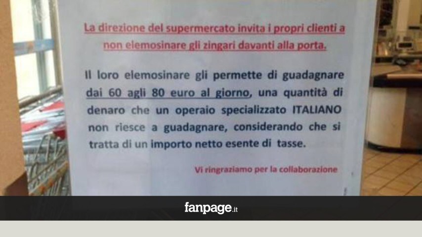 Una famiglia di rom staziona da anni davanti ad un supermercato, a Catania, chiedendo insistentemente l'elemosina. Una situazione che ha spinto la direzione del supermercato ad esporre un cartello choc contro i rom. Immediata la replica del direttore Salvo Motta ai microfoni di Fanpage.it: "Non siamo razzisti ma allontanano i clienti. Tra l'altro guadagnano dai 60 agli 80 euro al giorno".