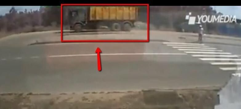Un camion, con un carico pesante, prova una manovra "al limite". Mentre il mezzo pesante tenta un'inversione, perde il controllo e si ribalta.