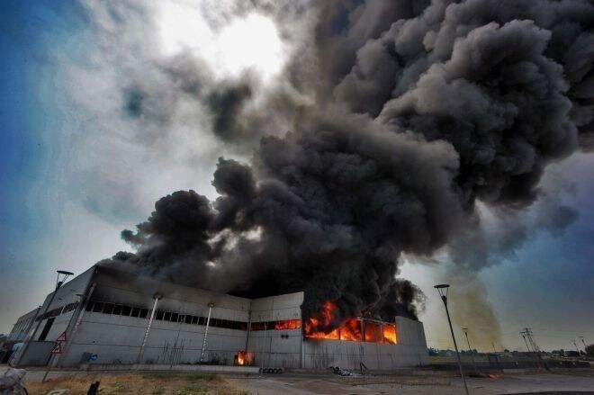 Incendio a Rovigo: fabbrica di plastica in fiamme