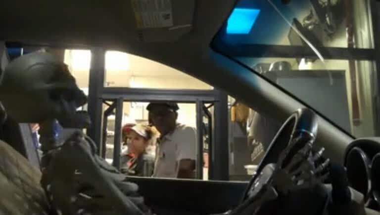 Uno scherzo terrificante ma geniale. Come reagireste se vedeste uno scheletro all'interno di una macchina?
