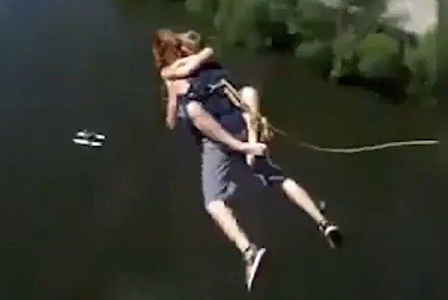 Una ragazza si è lanciata insieme al suo ragazzo, senza elastico e senza nessuna protezione, ma solamente mantenendosi stretta a lui