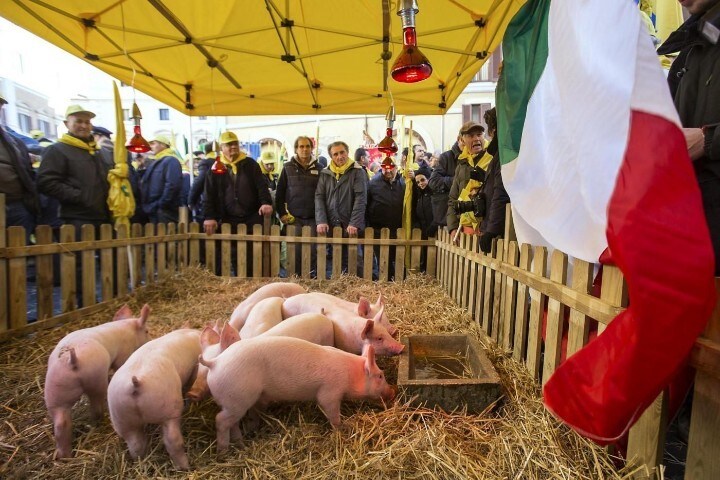 Maiali a Montecitorio: la protesta degli allevatori