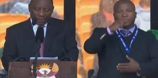 Beffa al funerale di Mandela: l'interprete dei segni è falso. A denunciarlo il direttore della Federazione dei sordi del Sudafrica, Bruno Druchen, il quale ha dichiarato che "muoveva le mani senza alcuni significato", così come una deputata dell'African National Congress, Wilma Newhoudt, anche lei sorda, ha confermato.