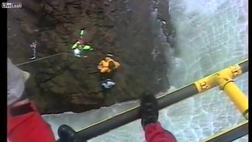Immagini da brividi riprese da un elicottero di salvataggio che soccorre due pescatori rimasti bloccati su una roccia in mezzo al mare dell'Australia. Proprio pochi secondi prima che un'onda li spazzi via i due vengono messi in salvo.