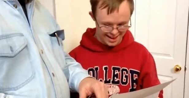 La straordinaria reazione di ragazzo down, all'ammissione al College