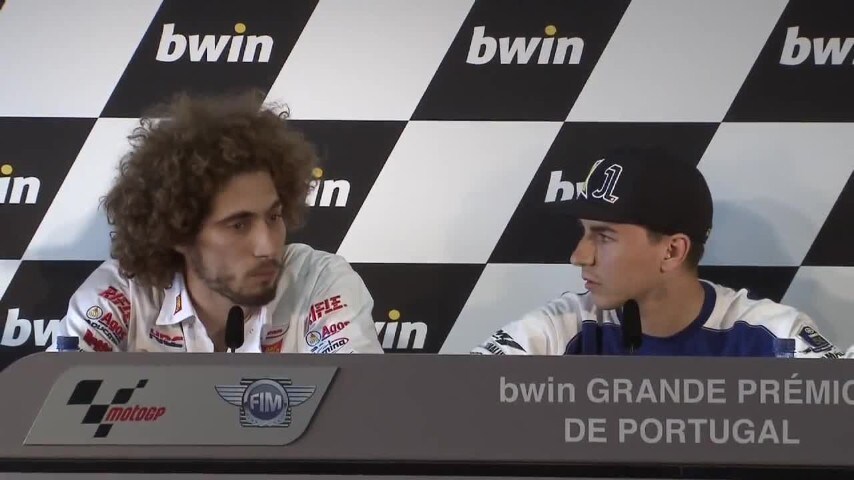 Durante il weekend del Gp dell'Estoril, il terzo di quella stagione, in conferenza stampa Jorge Lorenzo accusò pesantemente lo stile di guida di Marco Simoncelli: "Dico solo che se va tutto liscio va bene, ma che se ci sarà un altro contatto tra di noi sarà un problema". La risposta del Sic fu più ironica che mai: "Allora vorrà dire che mi arresteranno". Una risposta che incarnava lo spirito di Simoncelli.