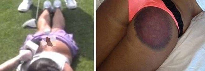 Un servizio sexy su un campo da gol è costato caro ad una modella. L'idea del fotografo era di usare il sedere di Liz Dickson, modella 28enne, come base per colpire una pallina da golf. Non tutto fila liscio visto che il tiratore colpisce proprio il fondoschiena della donna, lasciandole un bel livido. La modella ora chiede un risarcimento di ben 500mila dollari.