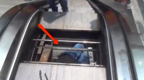 Inghiottito dalle scale mobili: le immagini del miracoloso salvataggio