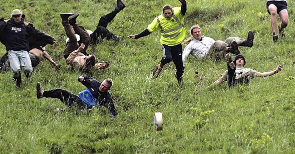 Si chiama Cheeserolling (dall'inglese "Formaggio rotolante") ed è una competizione sportiva basata sulla corsa. I partecipanti si fronteggiano un una corsa lungo pendii molto scoscesi, rincorrendo una forma di formaggio che rotola e che può arrivare anche a oltre 100 km/h. Vince chi la afferra e arriva prima al traguardo. Ecco le immagini che giungono dalla collina di Cooper, in Inghilterra.