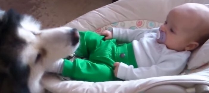 L' Alaskan malamute è un cane famoso per la sua dolcezza e docilità. È la razza ideale da prendere in considerazione se si ha in casa un neonato, perché questo cane saprà tenergli compagnia e sorvegliarlo attentamente. Se non ci credete, provate a vedere cosa avviene in questo filmato tra Evo e questo neonato: il cucciolo sembra non volersi staccare dal bebè. La scena è tenerissima.