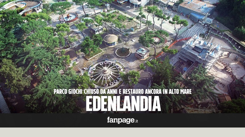 Ecco l'Edenlandia, il parco giochi più grande del sud Italia, chiuso da anni. Visto dall'alto, sembra abbandonato: non sono visibili i lavori di ammordernamento che avrebbero dovuto portare alla sua apertura già nello scorso aprile. Edenlandia è stato il primo parco giochi europeo, costruita nel 1965. Nel 2011 parte la richiesta di fallimento da parte della Mostra d’Oltremare, proprietaria del terreno, alla società Park and Leisure gestore di Edenlandia. Nel 2013 il parco giochi viene definitivamente chiuso al pubblico, 54 lavoratori sono messi in cassa integrazione. Nell'ottobre del 2014 la cordata di imprenditori guidata da Mario Schiano diventa comproprietaria dell’Edenlandia insieme alla Mostra d’Oltremare e nel giugno 2015 viene registrata la New Edenlandia Srl che si propone di: restaurare la giostra dei cavalli, il Drago, Viaggio di Sogno, Dumbo e il Carosello e altre attrazioni storiche del parco giochi, oltre ad un serie di new entry che avrebbero dovuto prendere il posto delle giostre smantellate. Nel 28 febbraio 2016 la cordata si aggiudica la gara e per il 20 aprile 2016 annuncia la riapertura di Edenlandia. Apertura che viene rimandata per problemi con la Soprintendenza per i beni monumentali di Napoli e per la presenza di opere abusive nel sito. Nel maggio 2016 sono completati i lavori di recupero delle arcate d'ingresso del parco, mentre le immagini dal drone mostrano come sono state dismesse le attrazioni: autoscontro, giostra dei cavalli, drago cinese, polipo rotante, giostrine dei bambini. Sono in disuso: tronchi, vecchia America, Castello, maniero, viaggio di sogno, Variety. Il Castello è ancora imbragato con tubi innocenti e dall'alto non si nota nessuna attività di lavoro all'interno del parco.