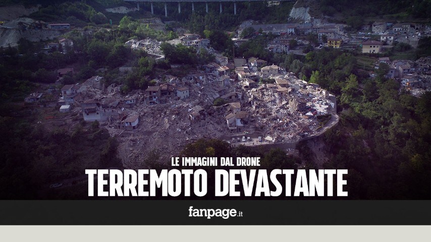 Le impressionanti immagini di Pescara del Tronto completamente rasa al suolo dalla forza del terremoto che la notte del 24 agosto ha colpito il centro Italia. Immagini che mostrano il grado di distruzione raggiunto dalla forza del sisma, mentre i soccorritori si arrampicano sui tetti crollati nella speranza di trovare qualcuno in vita.