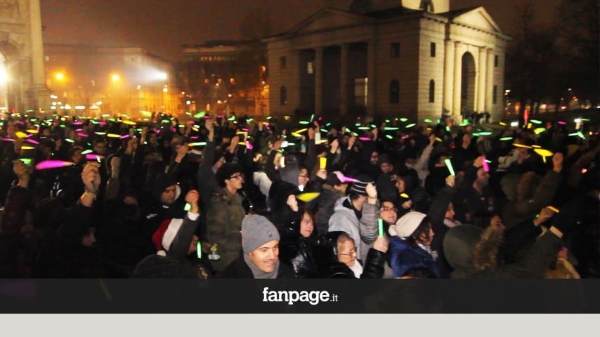 Nonostante una fastidiosissima pioggia, sono stati tanti i milanesi che hanno dato vita a un particolarissimo flash mob davanti all'Arco della Pace, tema un albero di Natale umano con decine di skylantern lanciate verso l'alto