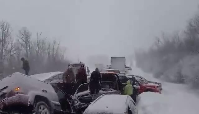 Le abbondanti nevicate che stanno colpendo New York creano disagi e a volte incidenti sulle strade a lunga percorrenza. In questo caso, in un tratto stradale vicino Syracuse, decine di auto hanno dato vita ad uno "spettacolare" maxi tamponamento.