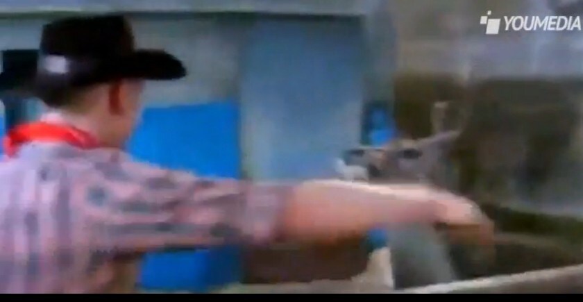 Questo ragazzo entra nel recinto del canguro con l'intenzione di sfidare l'animale. Il canguro però non gli dà il tempo che inizia a sferrare colpi a ripetizione, facendolo scappare per mettersi in salvo.