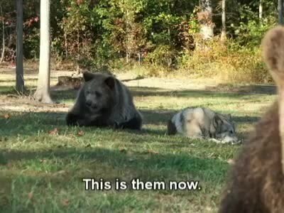 Anche se per natura orso e lupo sono portati ad affrontarsi per procacciare cibo e per difendere il territorio, questi due cuccioli giocano come veri amici. Chissà se, una volta adulti, riusciranno a mantenere questo feeling.