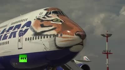 La compagnia aerea russa 'Transaero Airlines' ha svelato il suo nuovo 'Boeing 747-400' per sensibilizzare l'opinione pubblica al salvataggio delle tigri siberiane. Sulla livrea ecco disegni e frasi per porre l'attenzione sui felini in via d'estinzione in Russia e negli altri paesi del mondo. Già da tempo esiste un programma del WWF-Russia e l'Amur Tiger Center che, sotto la supervisione del presidente russo, è riuscito a stabilizzare il numero di tigri siberiane nel mondo: 510 o 514 secondo l'ultimo censimento. Fonte: http://rt.com/news/269590-transaero-siberian-tiger-boeing/