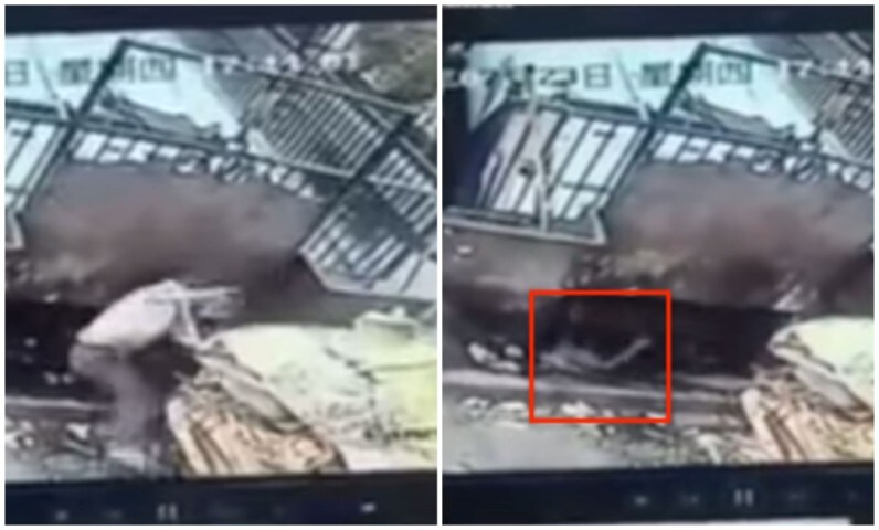 È accaduto in Cina. Un uomo stava gettando dei rifiuti nel contenitore quando scivola per sbaglio nel compressore e finisce per essere completamente schiacciato dal pesante rullo di ferro. Le immagini da brividi sono state registrate da una telecamera di sorveglianza.