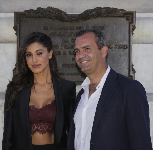 La showgirl e il sindaco di Napoli fanno "coppia" per la conclusione del restauro della Colonna Spezzata del Lungomare partenopeo.