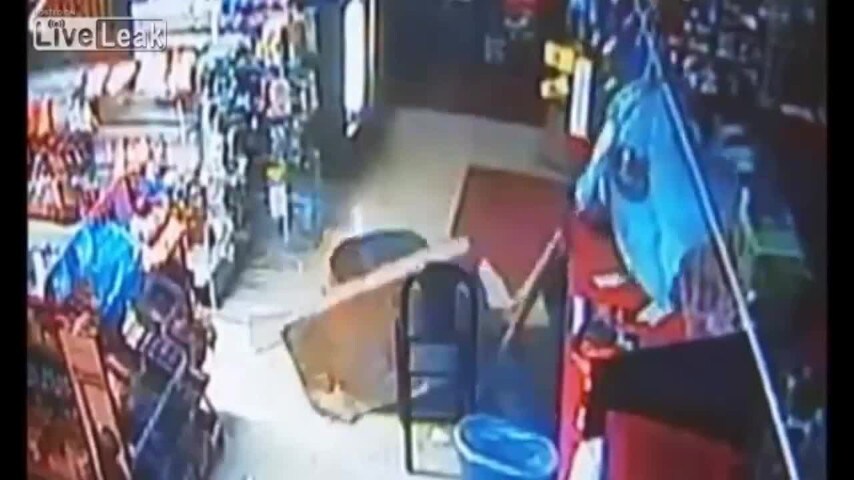 0:47 Perde il controllo della macchina e si schianta nella porta a vetri di un ufficio