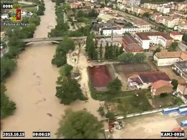 Le drammatiche fasi del maltempo e dell'alluvione a Benevento, conseguente l'esondazione del fiume Calore, ripresa dall'elicottero della Polizia di Stato in volo per coordinare i soccorsi.