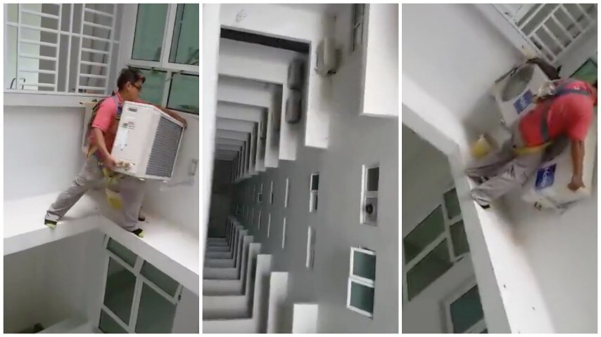 L'operaio che lavora sospeso nel vuoto, senza protezioni