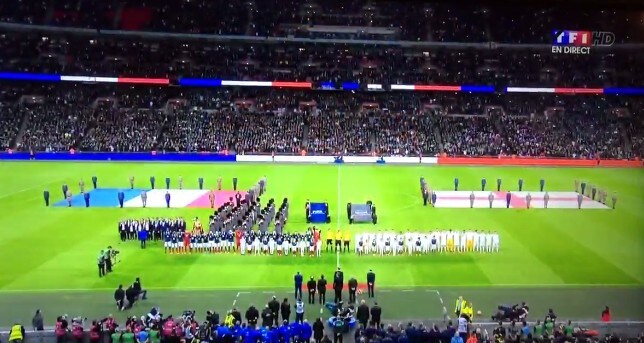 Prima dell'amichevole di lusso tra Inghilterra e Francia, con le squadre a centrocampo, è risuonato forte l'inno nazionale francese. Proprio il 13 novembre, durante la partita della Francia contro la Germania e nei pressi dello stadio c'era stato uno dei tanti attentati che hanno sconvolto il mondo intero.