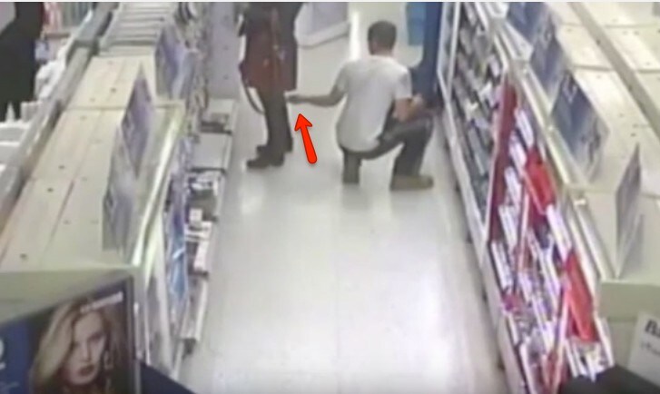 Le telecamere di sicurezza di un negozio di elettronica hanno ripreso questo ragazzo mentre si avvicina ad una ragazza con la gonna. Mentre è distratta, il "maniaco" si abbassa e fotografa con il suo cellulare, proprio sotto la gonna della giovane donna.