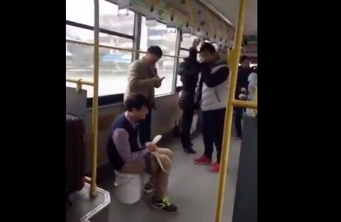 Il video registrato su un autobus in Cina e caricato sulla piattaforma video LiveLeak sul canale Lake8737, mostra una scena piuttosto disgustosa. Un ragazzo seduto su un secchio con i pantaloni abbassati. Dalla descrizione e anche da alcune reazioni delle persone vicine, sembra che il ragazzo stia proprio defecando, anche se il fatto che nessuno gli dica nulla lascia qualche dubbio che si possa trattare solo di uno scherzo.Fonte: http://www.liveleak.com/c/Lake8737