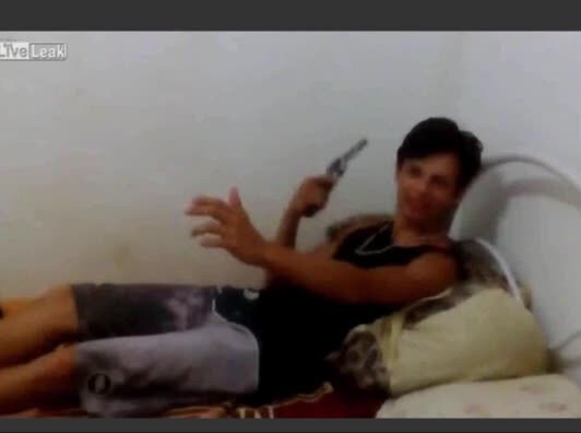 ATTENZIONE, LE IMMAGINI POTREBBERO URTARE LA VOSTRA SENSIBILITÀ - Un ragazzo "gioca" con una pistola e la avvicina alla testa. Poi preme il grilletto più volte, successivamente parte un colpo. Non si capisce se il ragazzo sapesse che fosse carica e che quindi il proiettile sia stato sparato consapevolmente, in una sorta di roulette russa. Per sua fortuna però il colpo non è stato fatale, dato che il proiettile ha solo sfiorato la testa del giovane, provocandogli comunque una ferita.