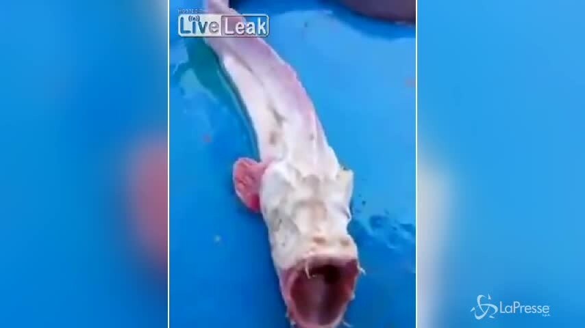 Uno "strano" pesce spalanca le fauci dopo essere stato pescato