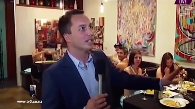 Panico in Nuova Zelanda, quando una donna completamente nuda passa proprio davanti alla telecamera durante un collegamento in diretta tv. L'inviato alla 'cena per nudisti' evidentemente imbarazzato e i conduttori in studio cercano di scusarsi ma ormai è troppo tardi.