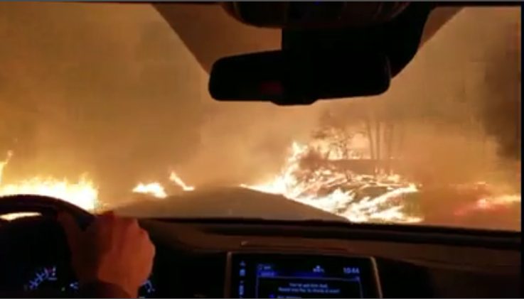 Sembra la scena di un film e invece è tutto reale: una donna mostra la fuga in auto della sua famiglia dall'incendio che ha colpito il Nord della California. Sono circa 50 mila le persone che sono state fatte evacuare dalla zona: l'incendio ha devastato oltre 200 mila ettari di terreno.