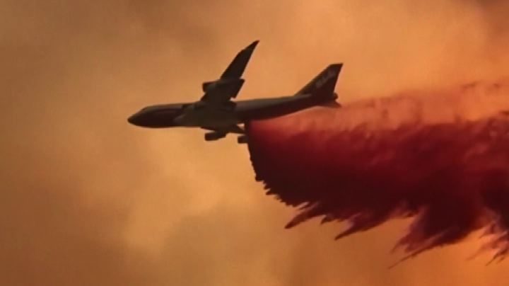 Le spettacolari immagini del Boeing 747 usato per spegnere gli incendi