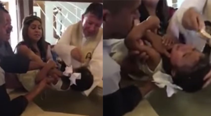 Una bambina di 3 anni sta per essere battezzata in chiesa. La famiglia è attorno e il prete sta per bagnarle la testa, ma la piccola è infastidita e non vuole essere toccata dal prete che le bagna la testa, mentre la bambina lo insulta pesantemente. Il video è stato girato in Messico e ha ricevuto in pochissimi giorni milioni di visualizzazioni.