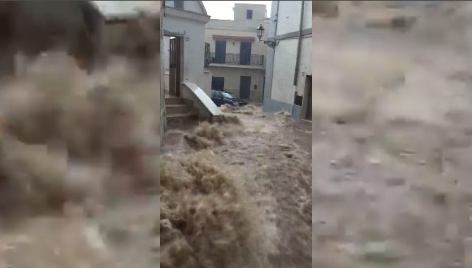 Le strade di Massafra, provincia di Taranto, completamente allagate. Le immagini mostrano quello che sembra essere un fiume in piena: numerosi i disagi per gli automobilisti come mostrato.
