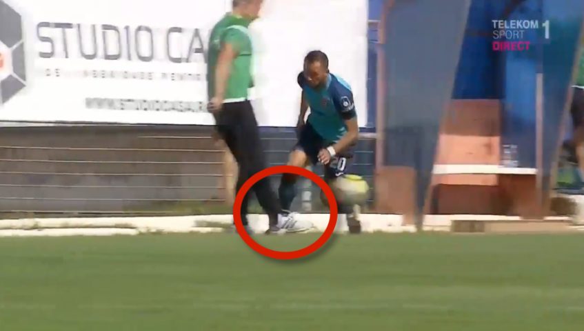 Nel campionato di seconda categoria rumena ecco l'intervento da difensore per l'allenatore dell'Arges, Emil Sandoi, che ferma così la corsa dell'avversario che milita nel Chindia. L'arbitro non fa sconti ed espelle l'allenatore.
