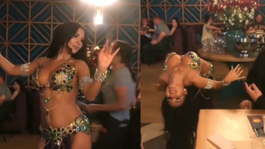 La bellissima danzatrice del ventre si avvicina al tavolo ed inizia a ballare: rimangono tutti incantati