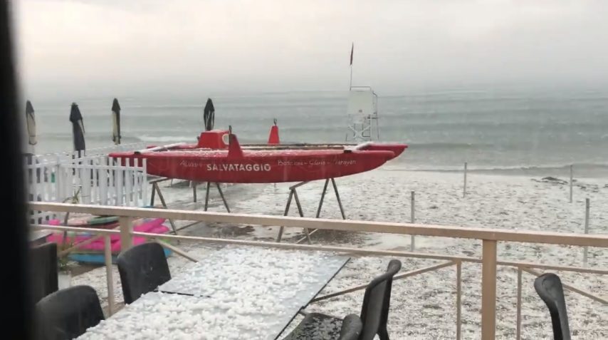 Alassio 'bombardata' dalla grandine: le spiagge diventano bianche in Liguria